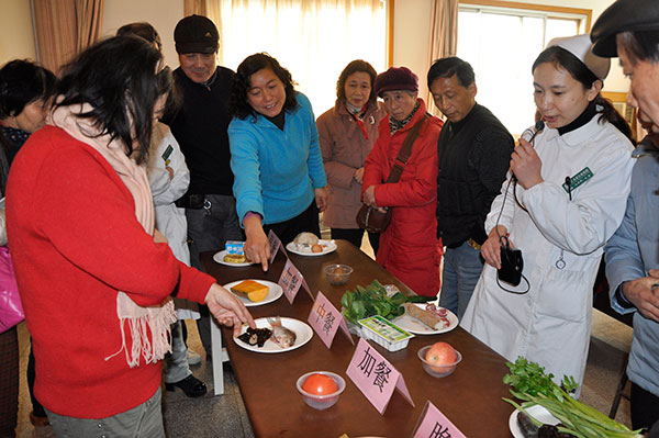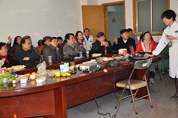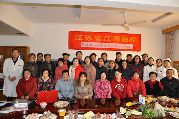 12月29日,虽然窗外寒风凛冽,但江原医院城中部三楼糖尿病中心却春意盎然,新老糖尿病友从四面八方而来,欢聚一堂,与医护人员一同参加体验活动。上午8点30分活动正式开始,首先,陈琰副主任用生动的语言为病人讲解如何做好节假日的管理,尽情地享受节假日的快乐与美味。病友们个个认真倾听,有的还仔细做着笔记。接着,程晓青护士长带领医护人员和病友随着欢快的音乐一起学跳健身操,虽然大家动作不大熟练,有些甚至还略显笨拙,但病友们个个脸上都洋溢着欢乐的笑。还有病友为大家表演了精彩的节目:养生太极拳、八段锦、锡剧表演等,在活动中让病友感受到了运动与爱好的乐趣。在科学配餐环节,专科护士沈燕娜用日常生活中常用的食材,邀请病人及家属一起参与,共同完成早、中、晚餐及加餐的搭配,让大家直观的了解到如何科学的进行食物分配,做到既保证营养又能合理控制血糖。紧接着,活动进入了激烈的有奖竞猜环节,病友们个个踊跃举手,笑声不断……节目最后,张春华副院长用深入浅出的语言解释了如何选择定点医院的相关程序和优惠政策。活动在一片欢快的气氛中顺利结束。(文 团委 殷宇)