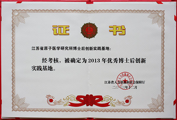 近日,我单位被省人力资源和社会保障厅确定为2013年博士后创新实践基地考核优秀单位。