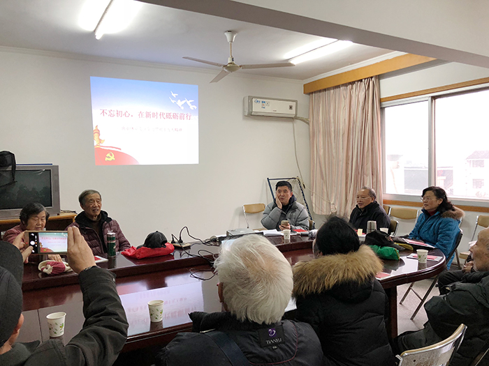 在2018年元旦即将到来之际,12月29日上午,在江原医院城中部三楼会议室,离退休党支部举行组织生活会,喜迎新年,深入学习党的十九大精神。所党委副书记、纪委书记秦秋萍出席会议,代表所党委向离退休党支部党员致以新年的问候,并为支部党员们送上了新年礼物:党章、党徽和十九大报告单行本。离退休党员们小心翼翼地将党徽佩戴在胸前,带着崇敬及喜悦之情认真自学了新党章及党的十大九大报告。接着,支部书记储志军代表支部班子作了2017年度党支部工作总结通报,希望离退休党员们能不忘初心跟党走,牢记使命献余热,保持不断加强党性修养的优良传统。为深入学习贯彻党的十九大精神,秦秋萍副书记为离退休党支部党员上了“不忘初心,在新时代砥砺前行”党的十九大精神学习专题党课,对党的十九大提出的新理论、新矛盾、新使命、新方略、新要求进行了深入讲解,并结合我所实际,思考了怎样把党的十九大精神融入发展实际,学以致用,回答了“干什么?怎么干?谁来干?”的问题。最后,秦书记要求党支部抓好十九大精神的学习工作,希望“新时代老党员,思想常新,理想常存,作用常在!”(组织人事科 苗迪)