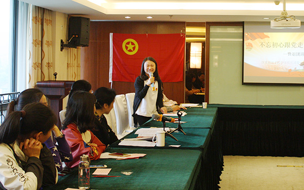 二、离团迎新。大会为适龄的团员举办了隆重的离团仪式,并为他们送上祝福和离团纪念品。离团代表邓黎利和魏利分别跟大家分享了她们在本职工作和团工作中的经验、收获和心得体会。