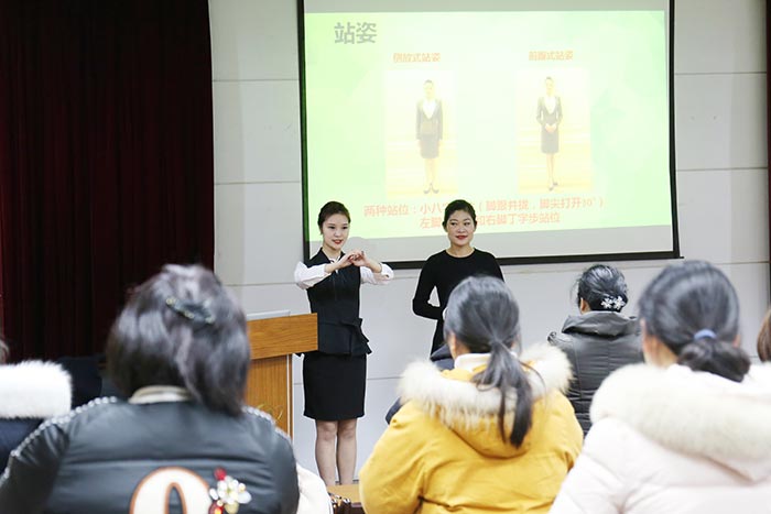 课堂上,培训师从“表情礼仪”、“优雅仪态”、“职业形象塑造”、“语言礼仪”等多个方面,依次讲解、示范了礼仪要点,并对在座女职工的仪态进行一一指导。参加学习的女职工两两结对,面对面共同练习标准微笑、握手姿势、互递名片等礼仪,不仅收获了优雅与自信,还在欢声笑语中消除了拘谨、释放了压力,增进了彼此间的熟悉与亲切,仿佛享受了一次轻松愉悦的心灵SPA。
