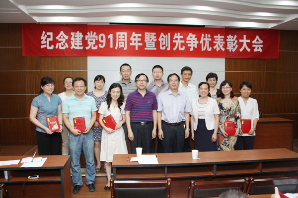 在庆祝建党91周年之际,所党委于6月28日下午,在所阶梯教室召开纪念建党91周年暨创先争优表彰大会。大会全面总结了2010年以来我所创先争优系列活动取得的经验和成果;进行了新党员入党宣誓仪式;表彰了在创先争优活动中涌现出的先进个人;对6位先进个人的事迹进行了宣讲。大会由所党委副书记、纪委书记秦秋萍主持,所长罗世能,副所长包建东、谢敏浩出席了会议,全体在职党员和入党积极分子参加大会。