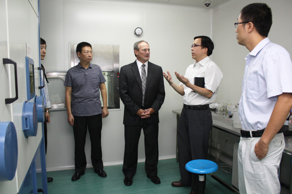9月13日,美国Fox Chase癌症中心国际部(Fox Chase Cancer Center, Fox Chase International)总裁Kurt Schwinghammer教授来我所进行交流访问。谢敏浩副所长代表我所热情接待了Schwinghammer教授一行,陪同参观了我所MicroPET中心、分子生物中心实验室、研发中心等部门,并介绍了我所在科研、开发和医疗等方面的情况。